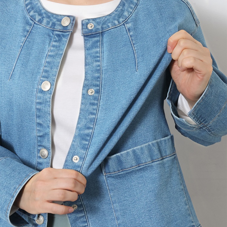 ストレッチデニムノーカラージャケット
