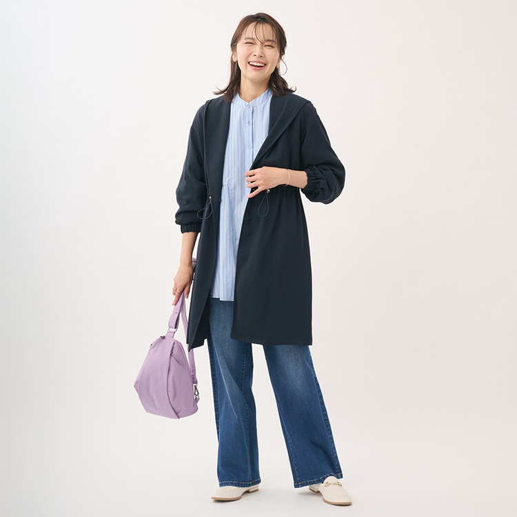カーディガン感覚で季節の変わり目に重宝する、ガウンライクなハーフコート