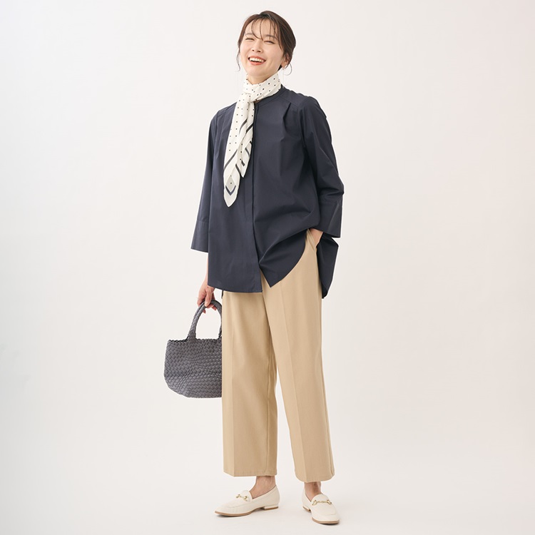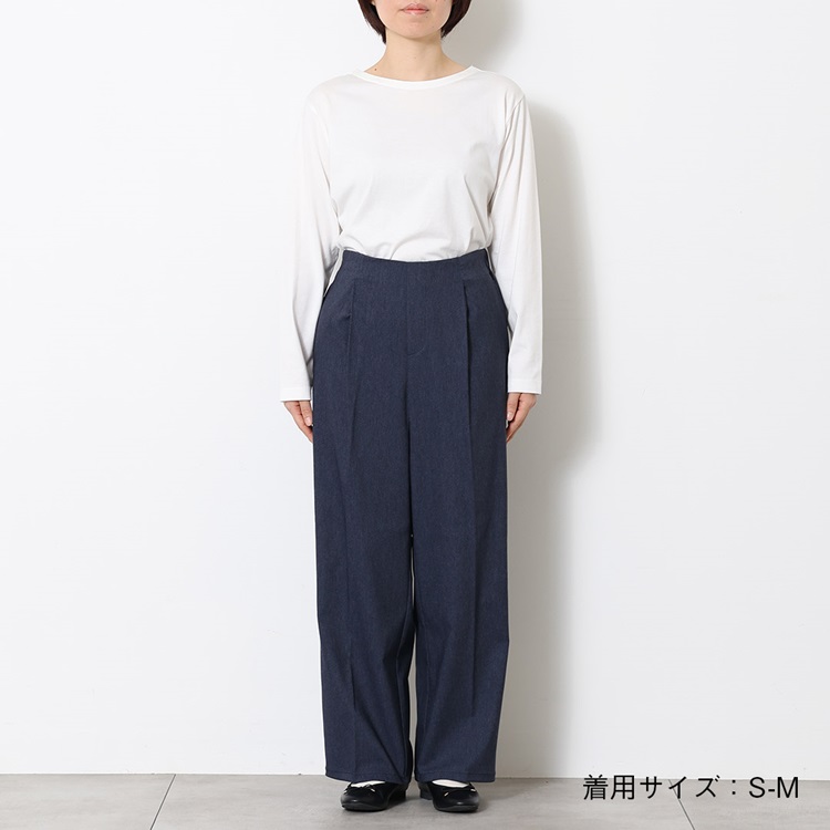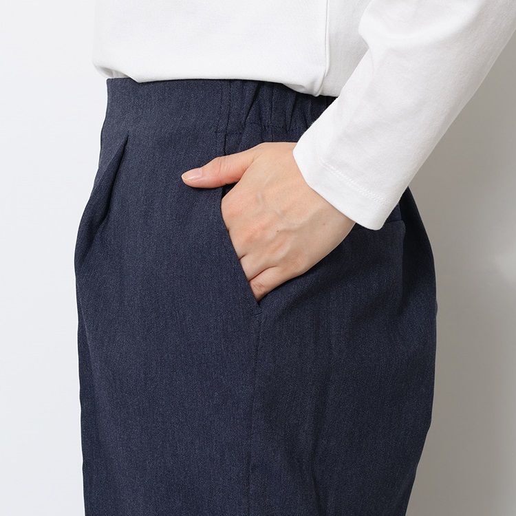 色落ちしにくいデニムライク素材。きれいめコーデにも使える万能パンツ