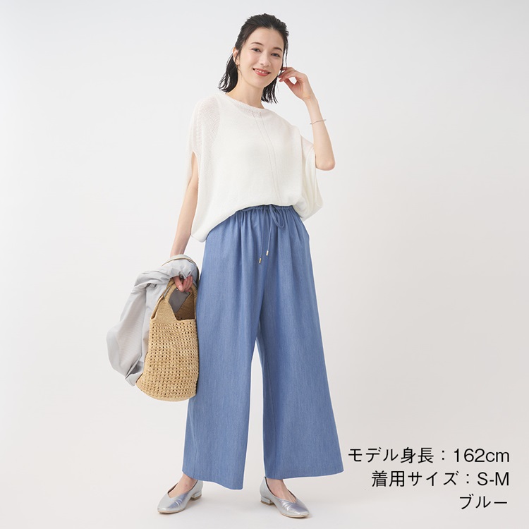 【すごナノ撥水】ソフトデニムライクイージーパンツ(ブルー(S-M))