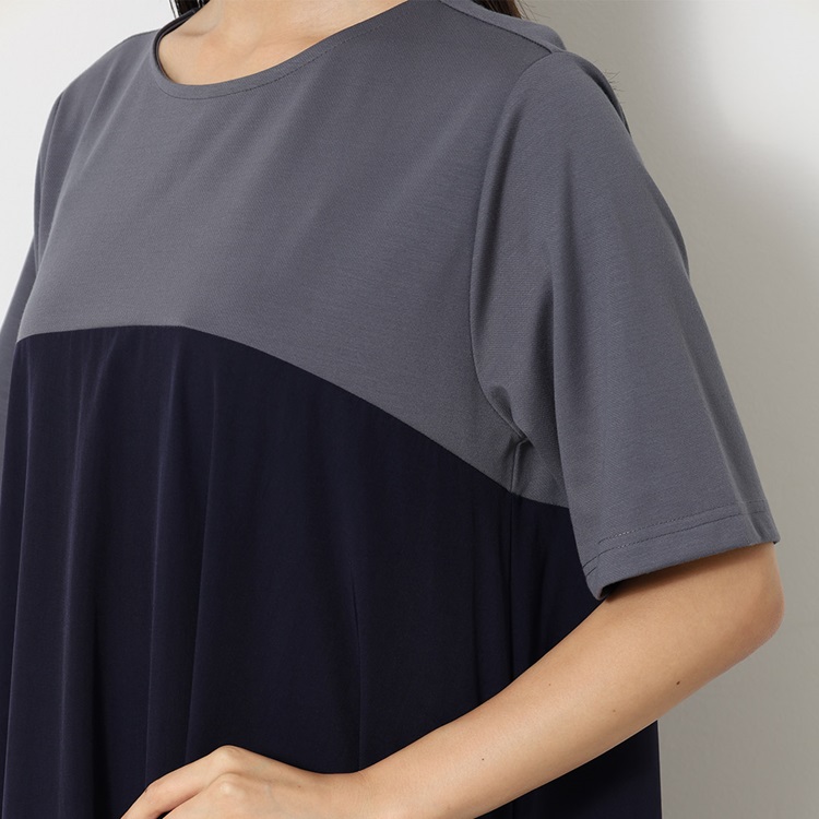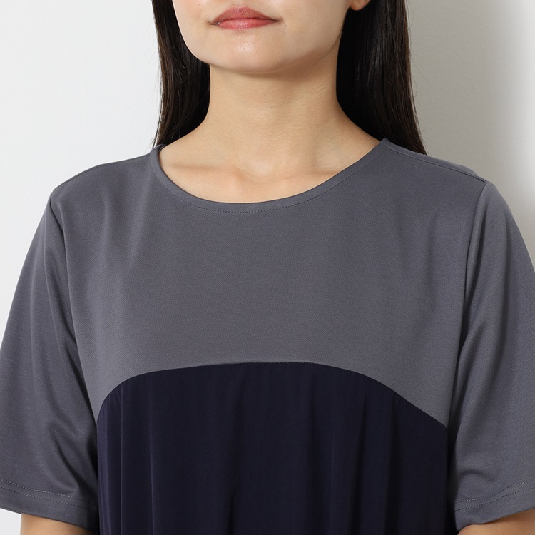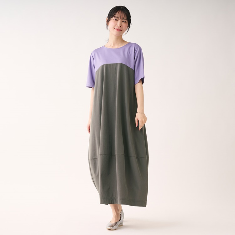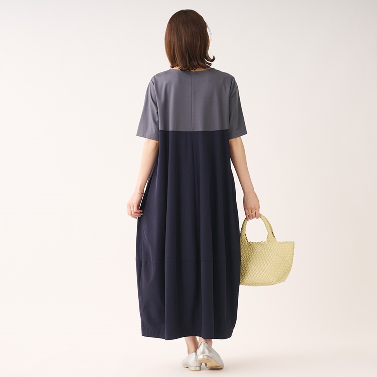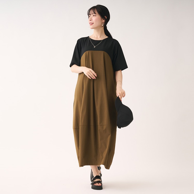 配色の異素材コンビデザインがシャレ見えするワンピース