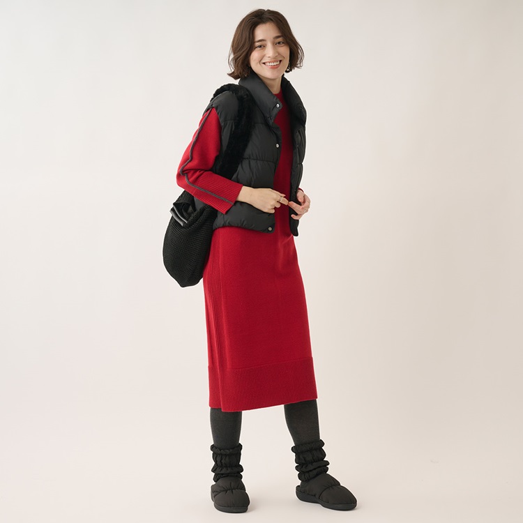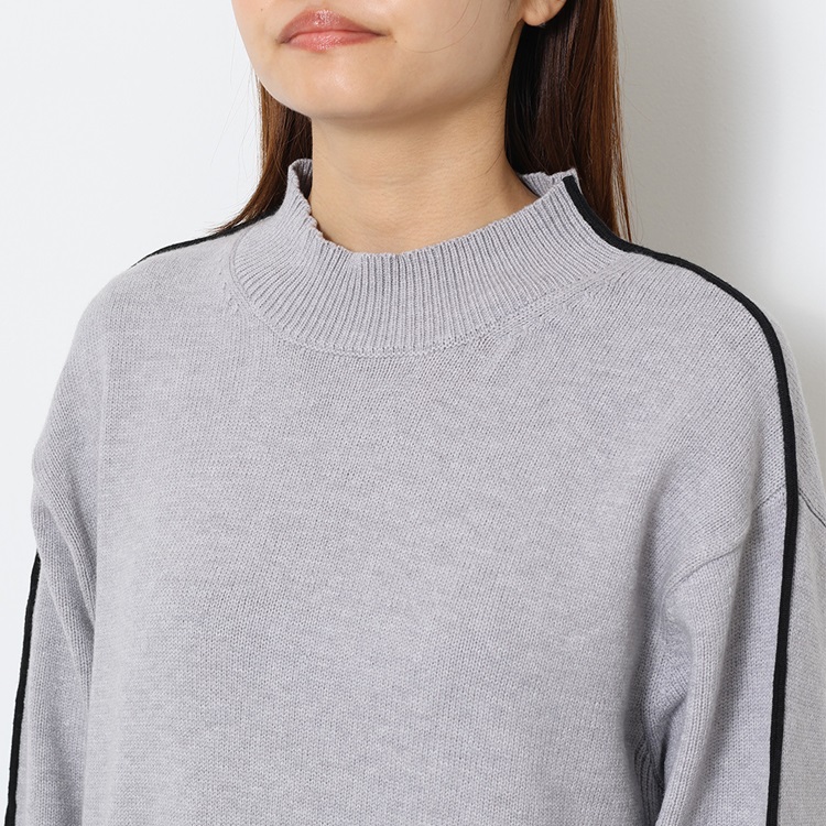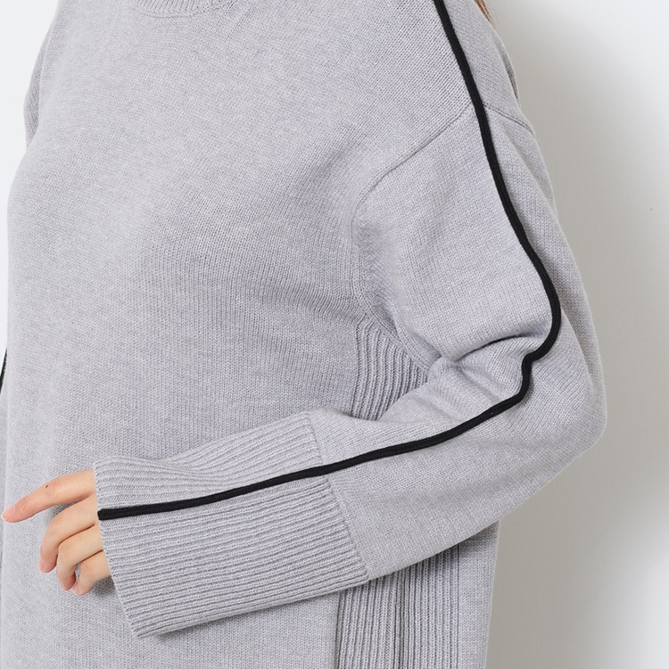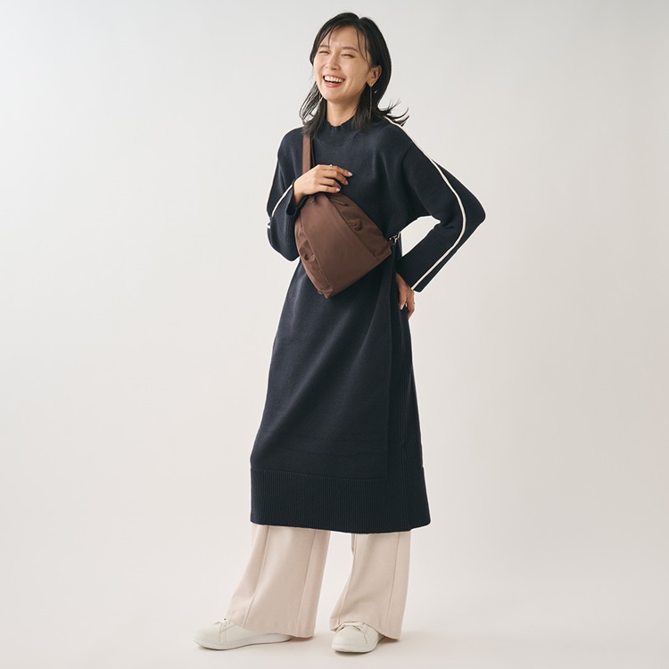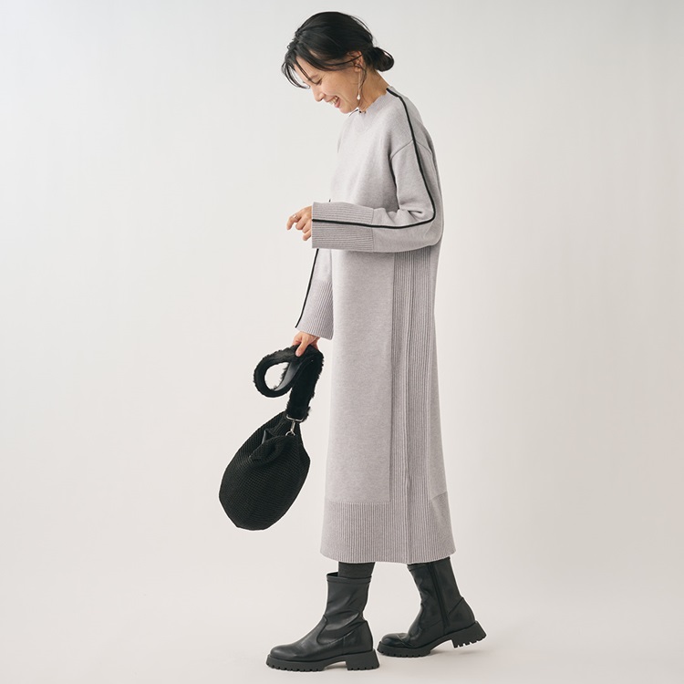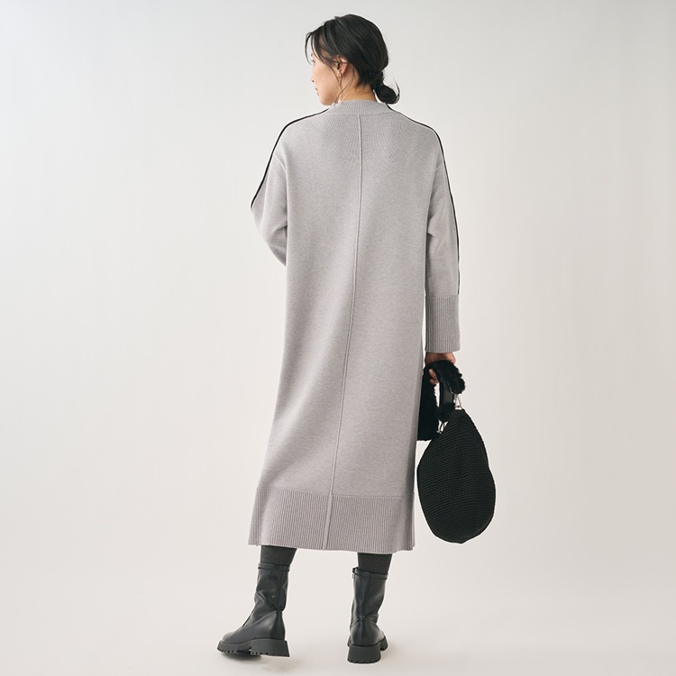 【洗濯機・タンブル乾燥OK・毛玉になりにくい】配色ラインがポイントのニットワンピース
