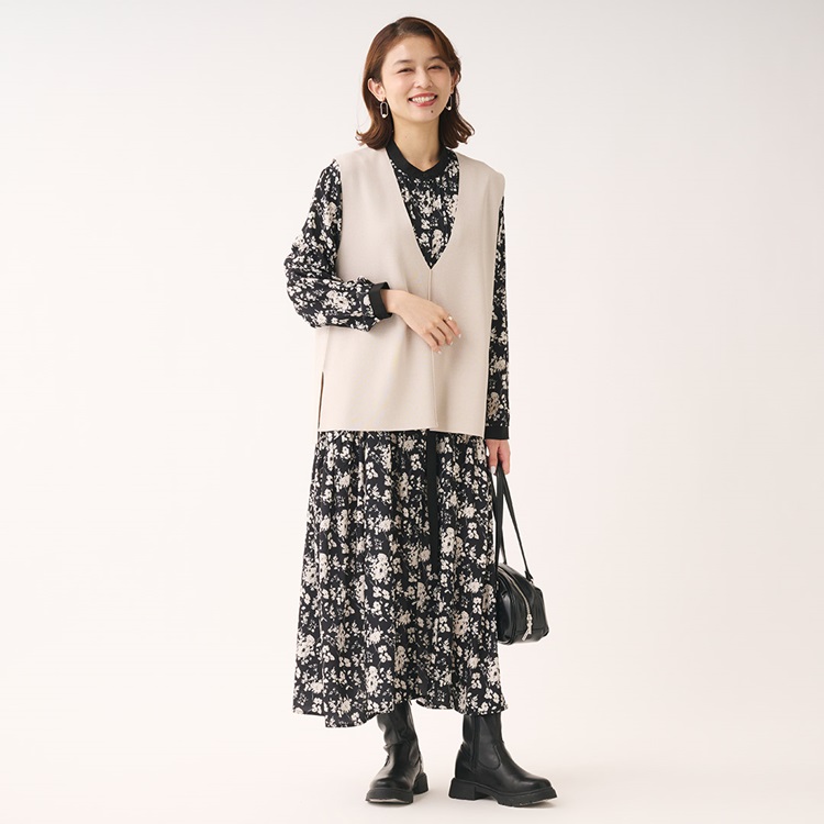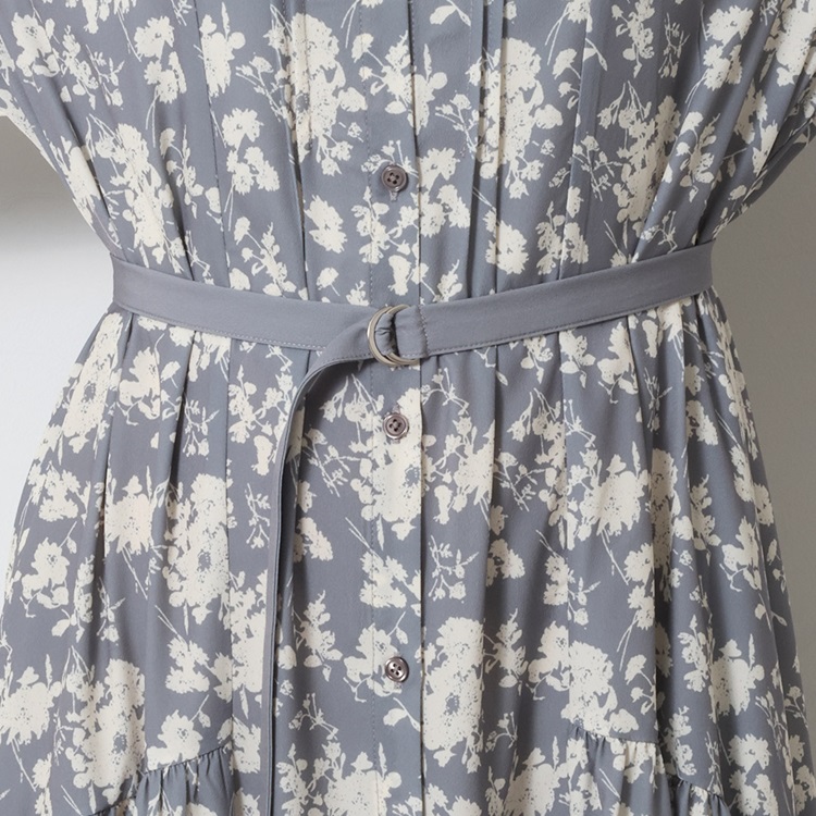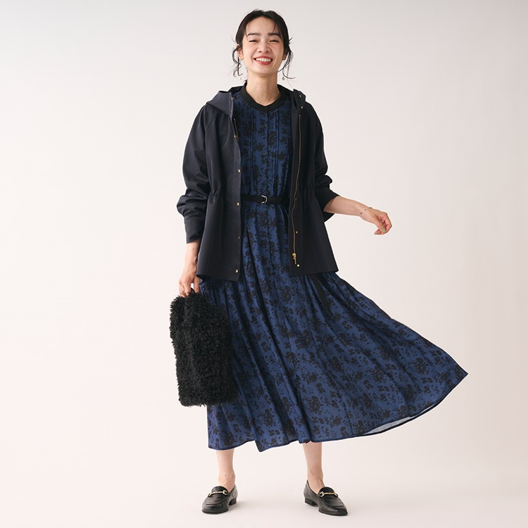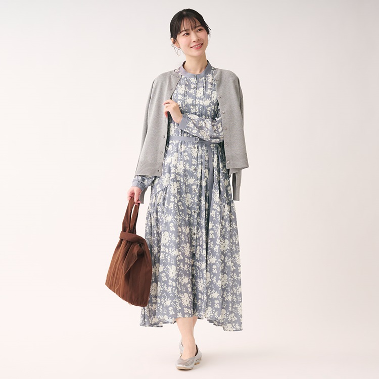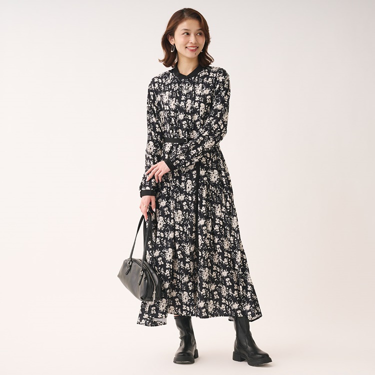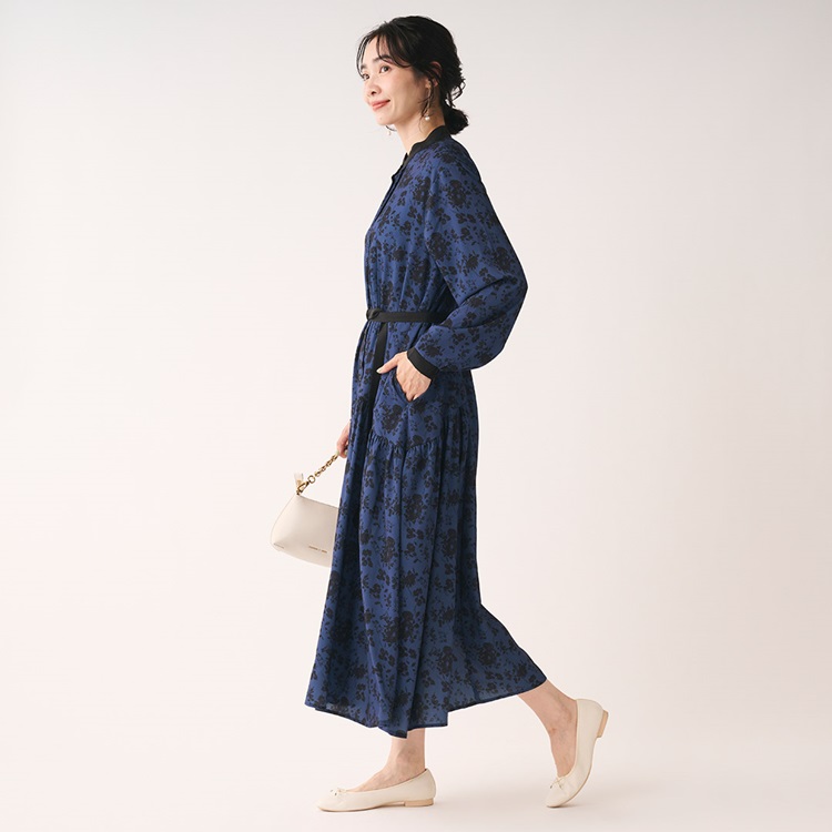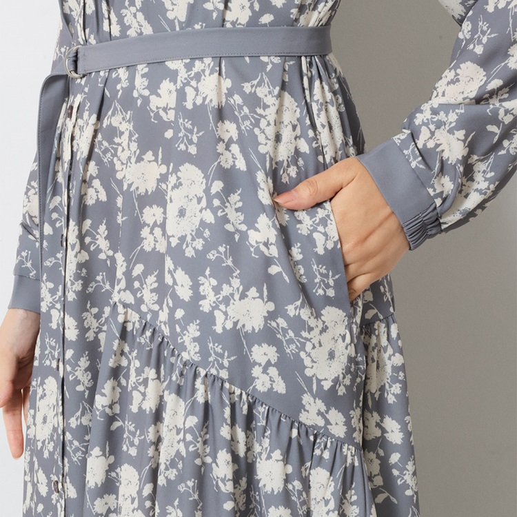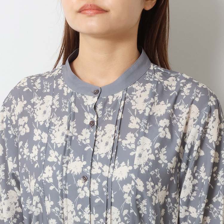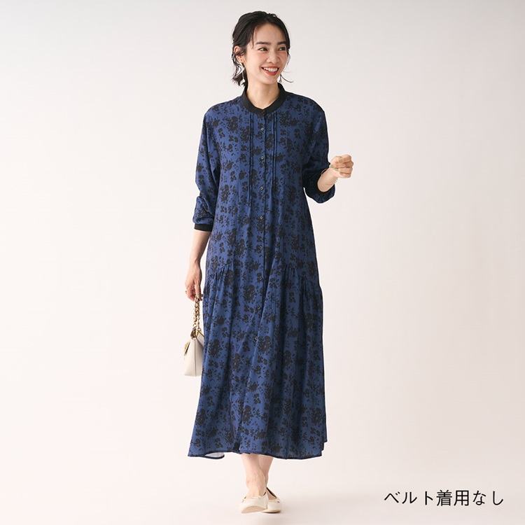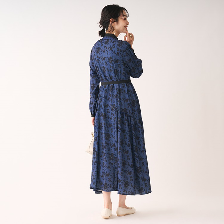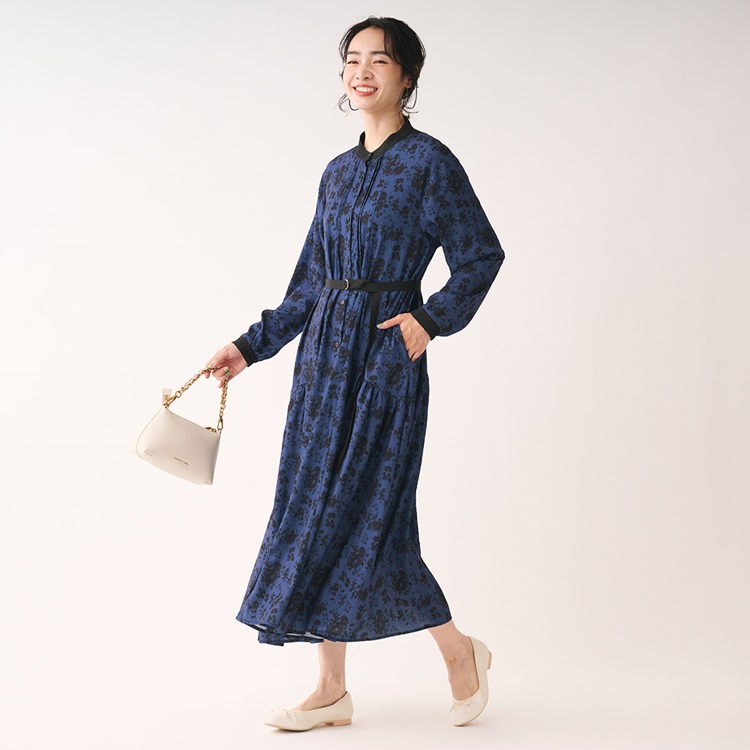 秋カラー×フラワープリントが華やぐギャザーシャツワンピース
