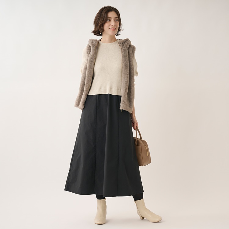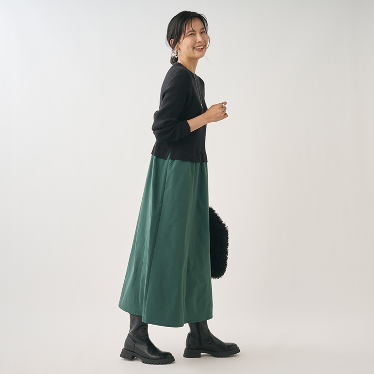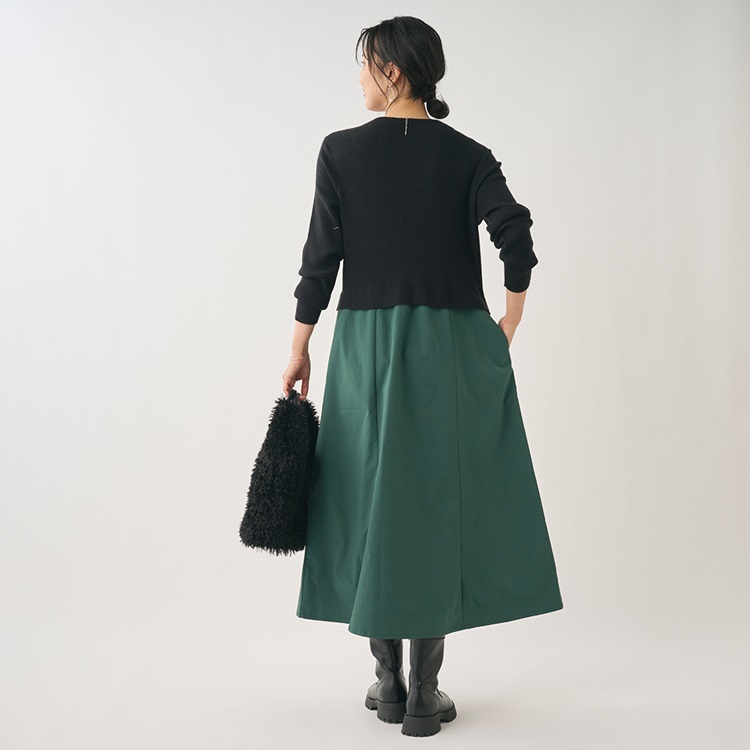 1枚でスタイリングが完成する 異素材コンビワンピース