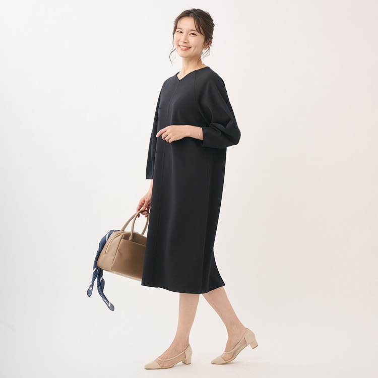 オケージョンにもおすすめ。コクーンスリーブがおしゃれな上品ワンピース