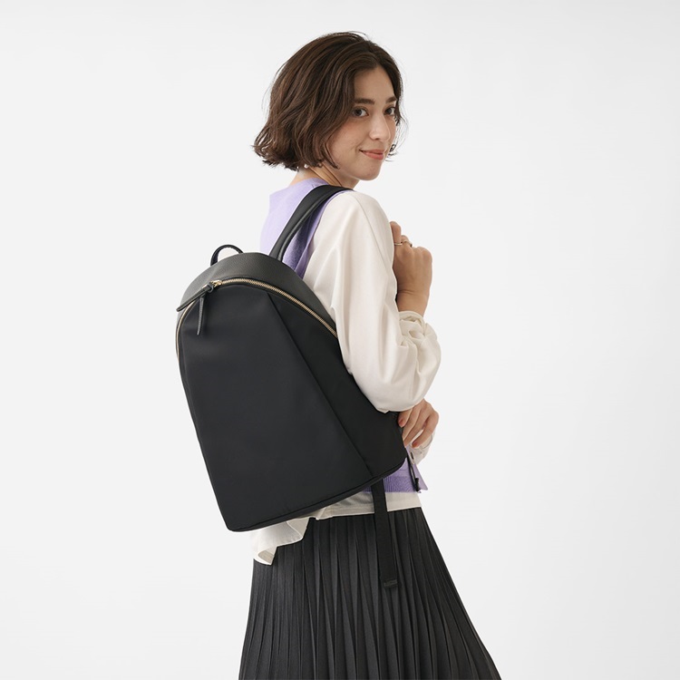 会社へ行くときはきれいめなスタイルが多いのでこちらのおしゃれなリュックには大変助かってます。前ポケには電車内でスムーズに出せるようにスマホと定期入れ、背面には飲み物を買う用に小銭入れを入れてます。めちゃめちゃ使いやすい。非常に満足。