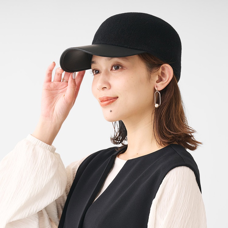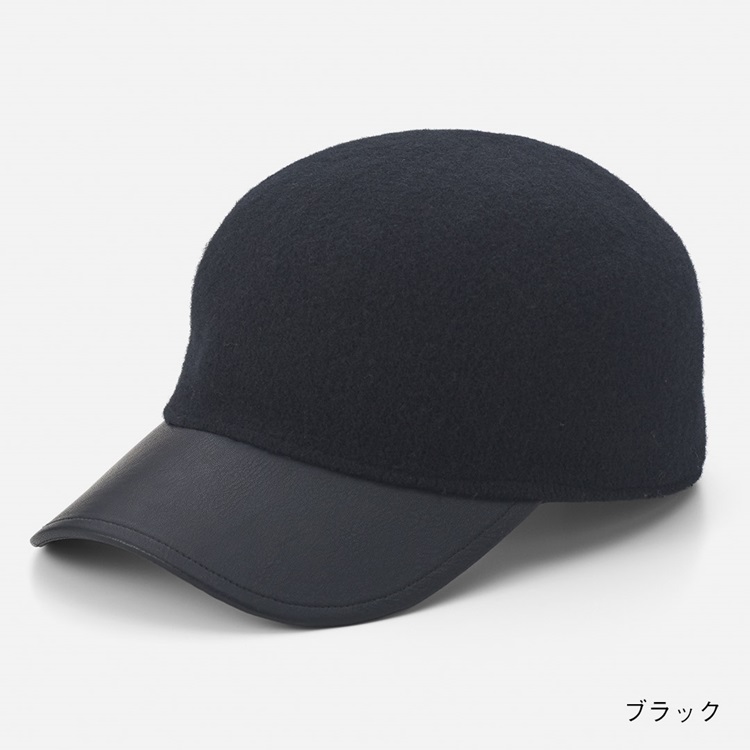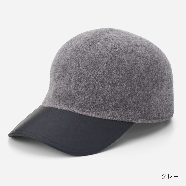ウール混合皮コンビキャップ
