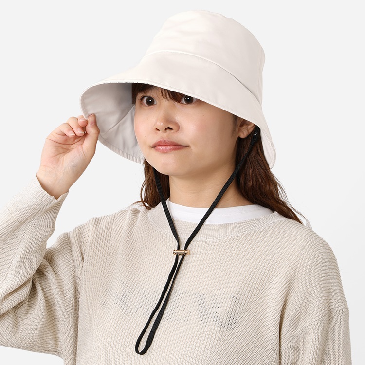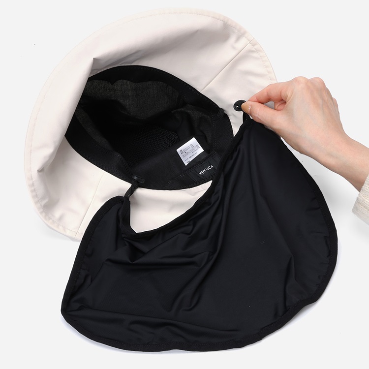 首元までカバーするフェイスガード付きで、顔まわりをしっかり覆えるのでUV対策や花粉対策にもおすすめのハットです。