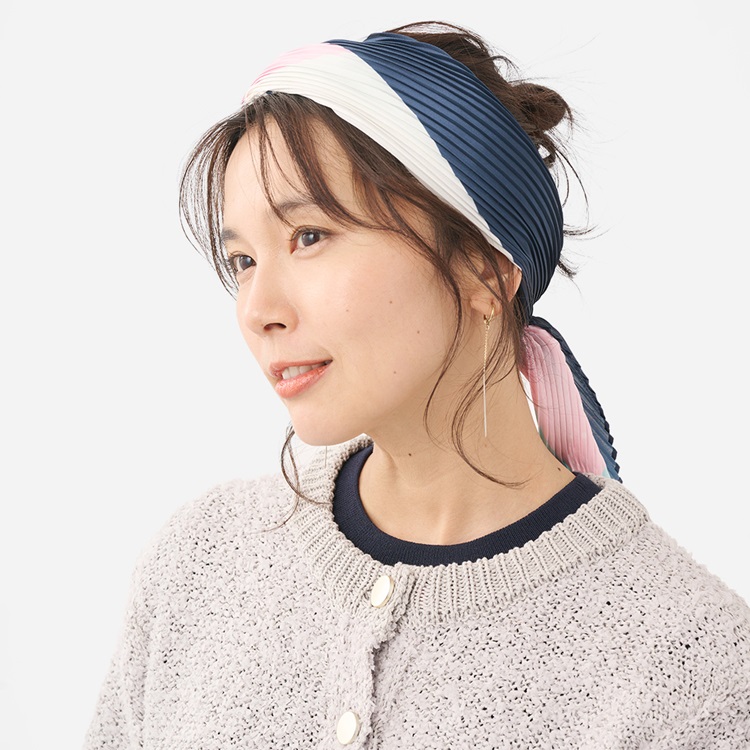 Re 抗菌UVカラースクエアプリーツスカーフ