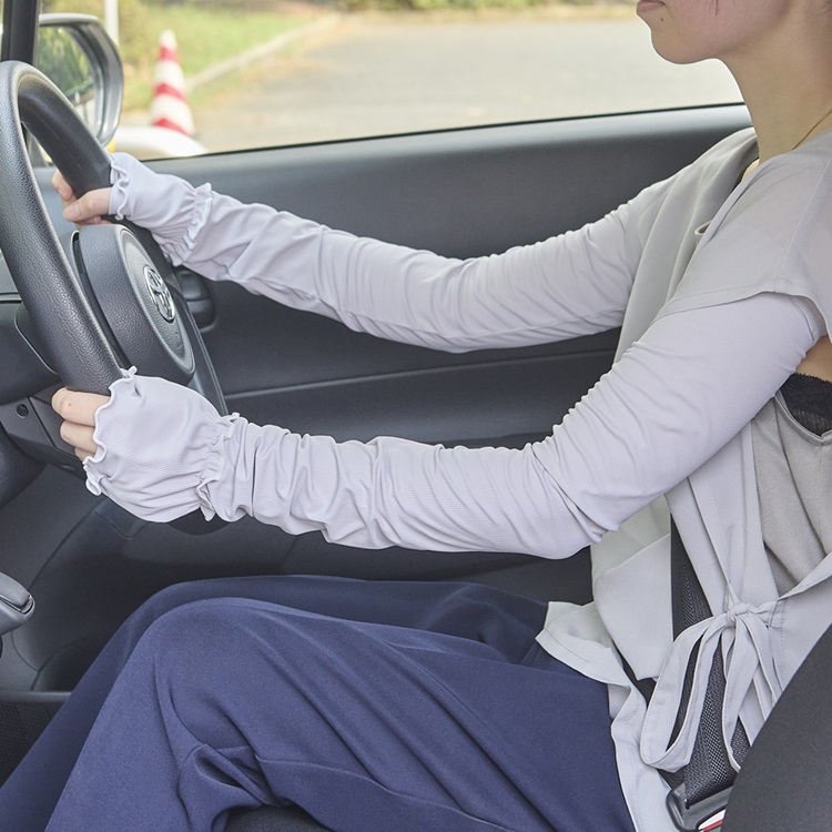 接触冷感 手のひらオープンリブフレア アームカバー ロング
