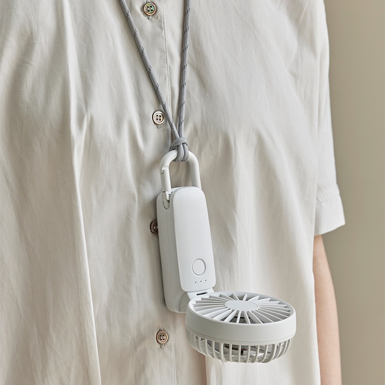 卓上でも使えるし、首からかけられるし、風量も強いので、この夏重宝しそうです!ただ、首からかけて使うときに体に当たる部分が細いため安定しにくい感じです。卓上に置いた時は、滑り止めがあるので安定します。全体的にとても満足です!!