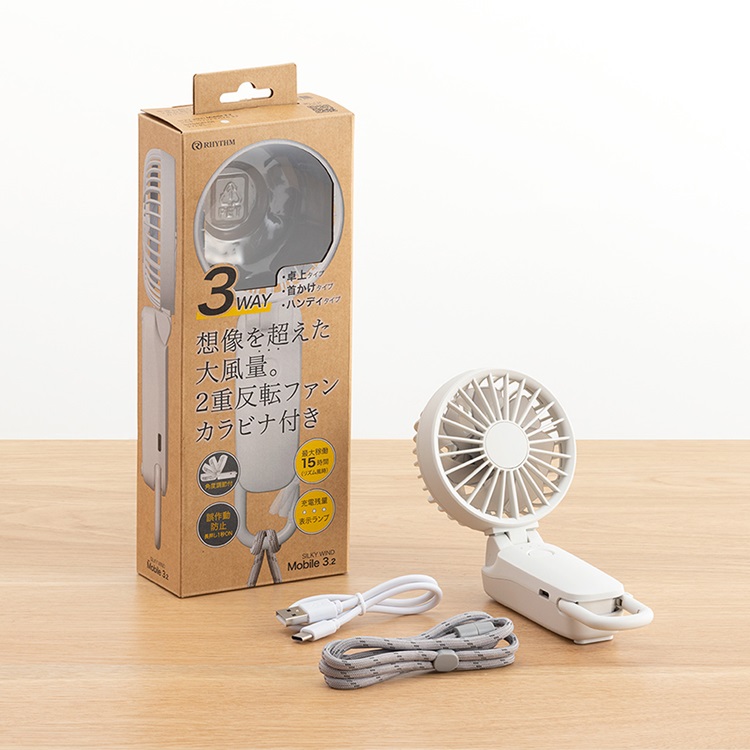 デスク/首掛け/ハンディの3WAYで使える大風量ファン