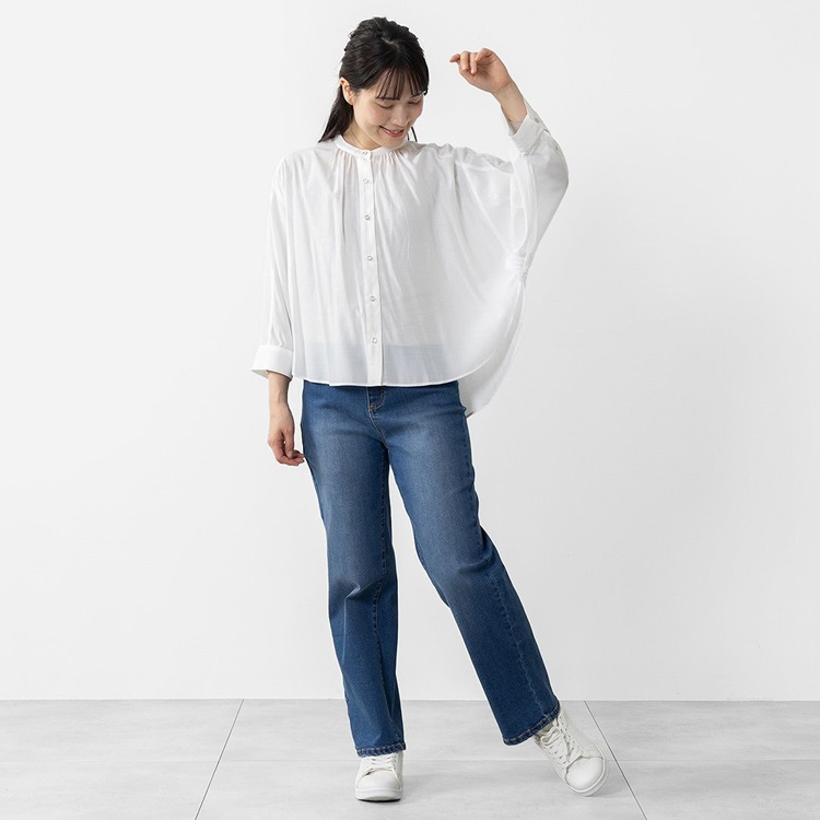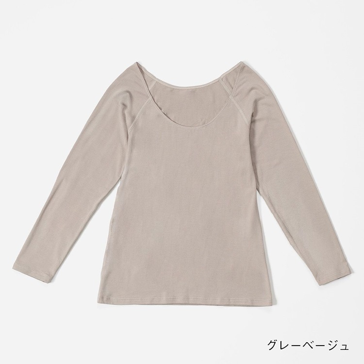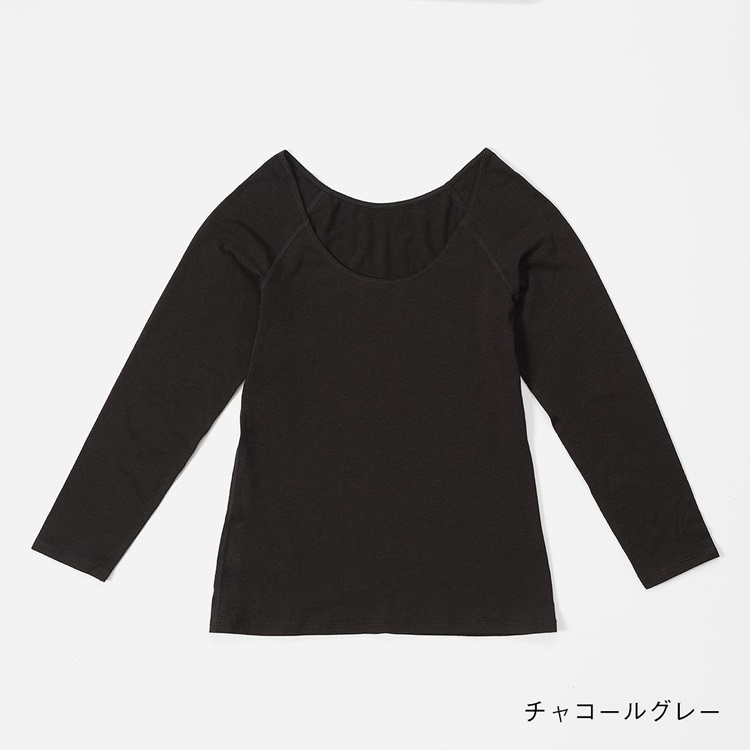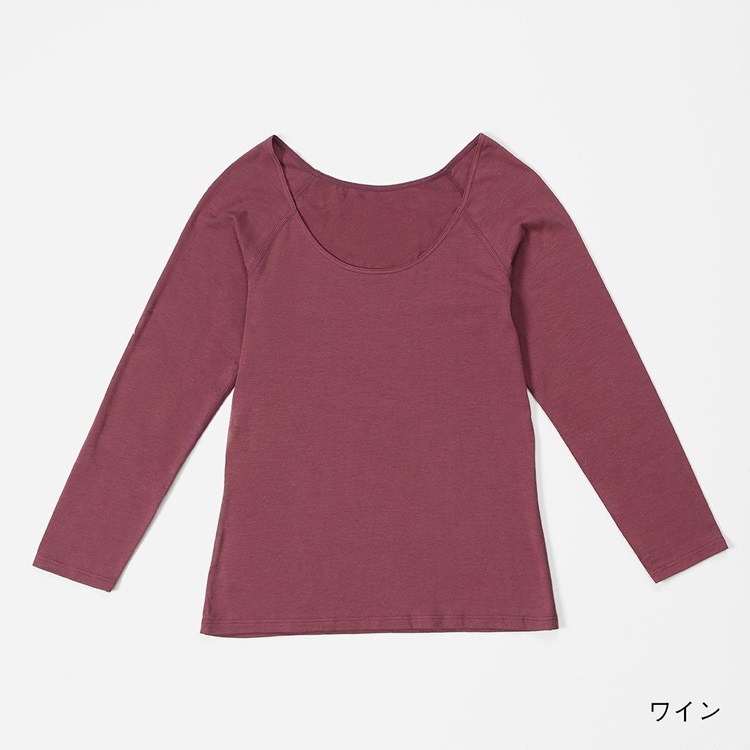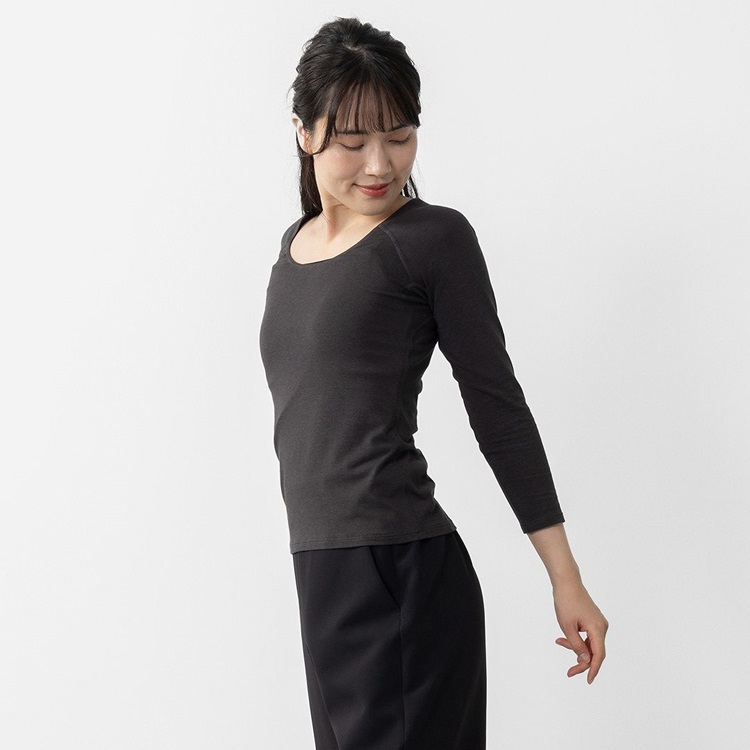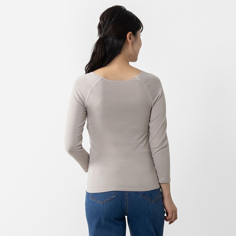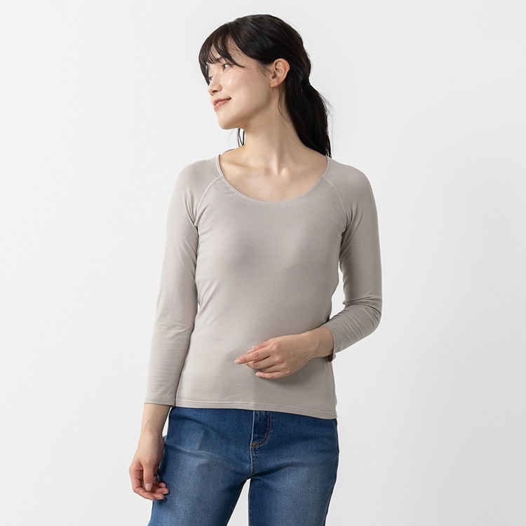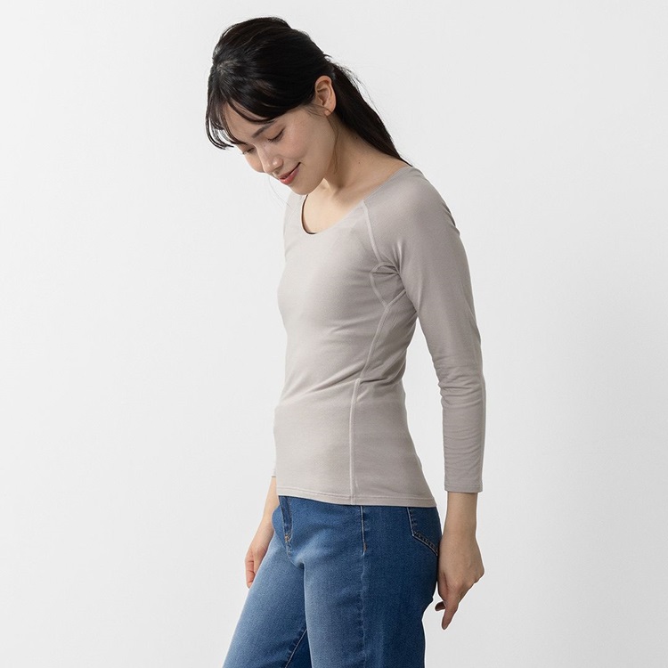 H 保湿Uネック発熱綿混あたたかインナー8分袖
