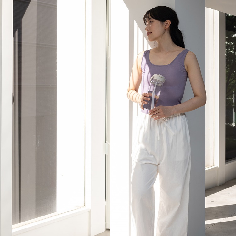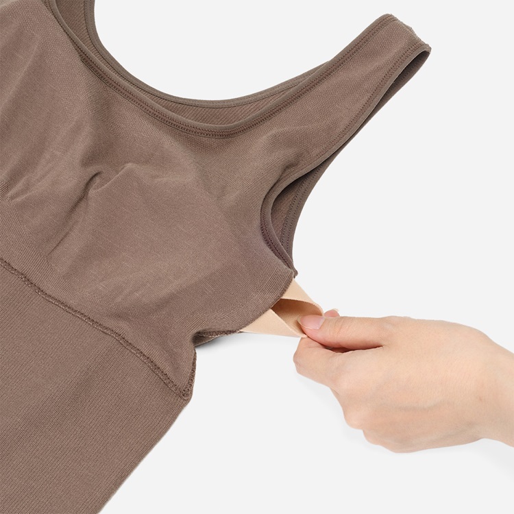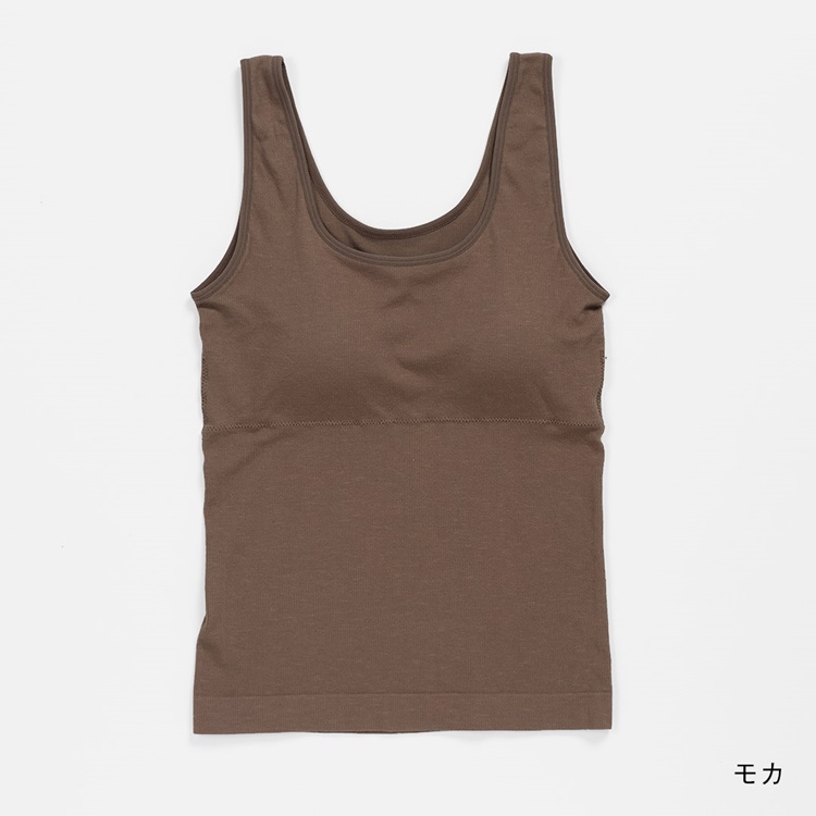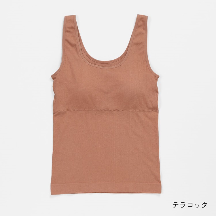 のびのび素材でリラックスな着用感。ストレスゼロのカップ付きキャミップ