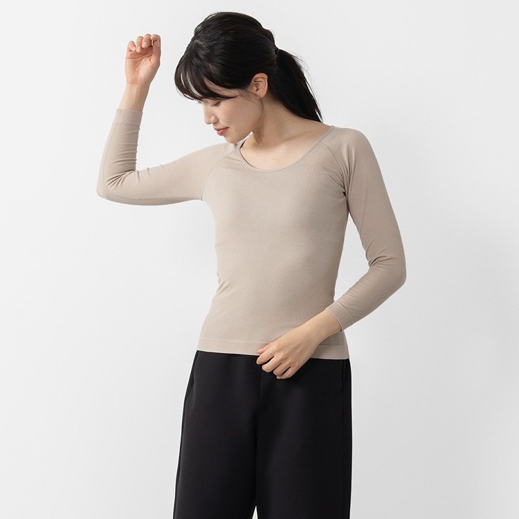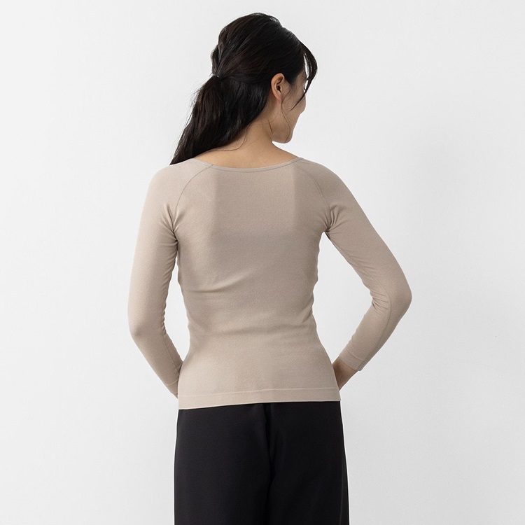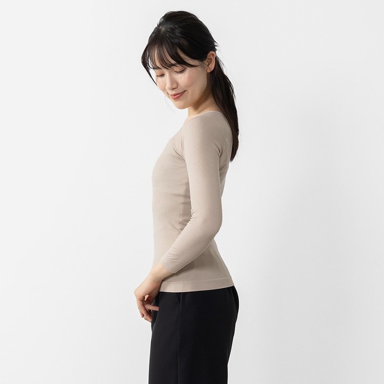 H のびのびリラックスUネックあたたかインナー8分袖