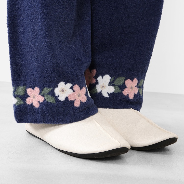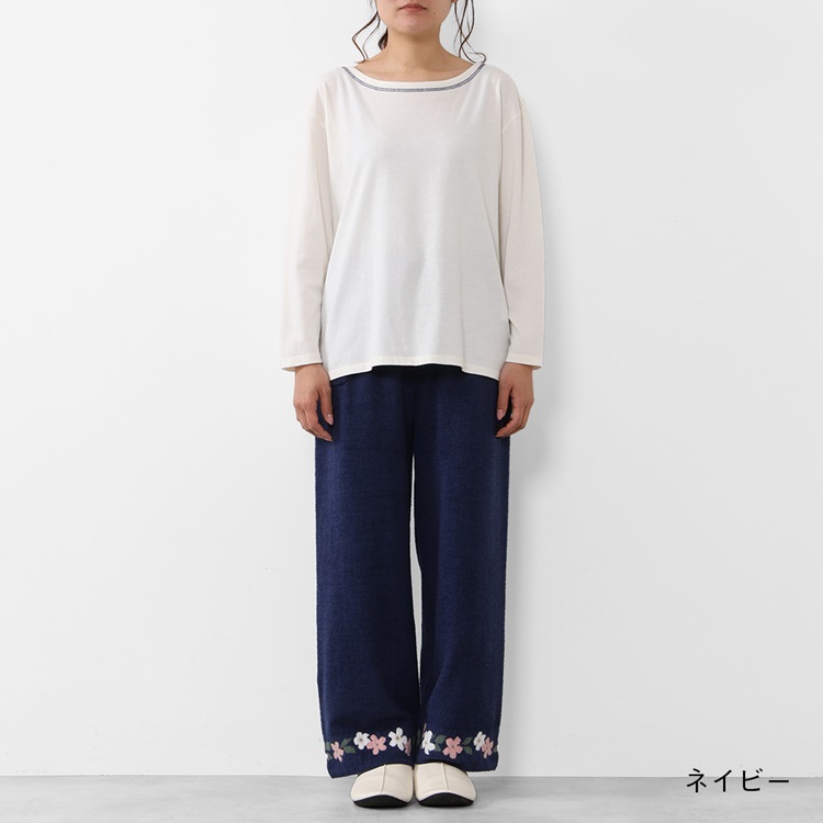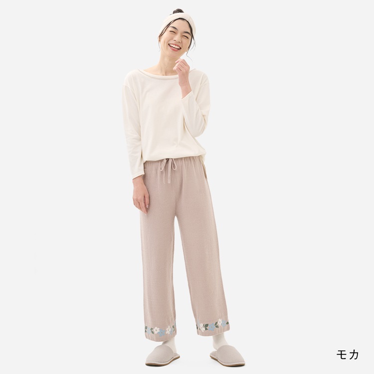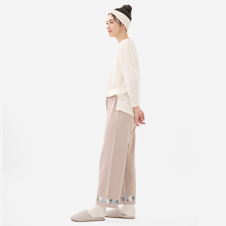 しめつけなしの楽ウェアを、気分があがる華やかスタイルで