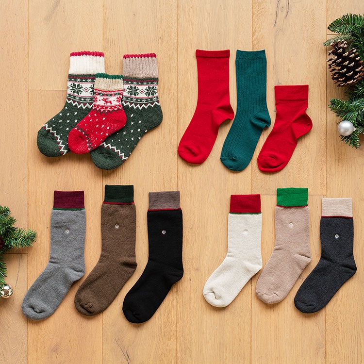 B キッズ 裏起毛 雪柄|ルームソックス|靴下