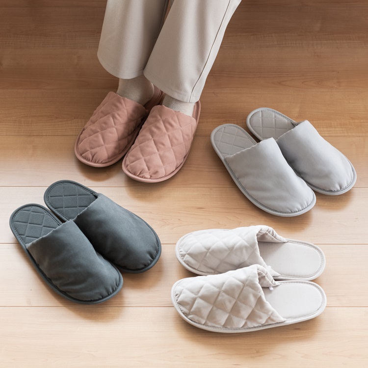 【底が拭ける】撥水 家事サポルームシューズ中ワタ甲キルト