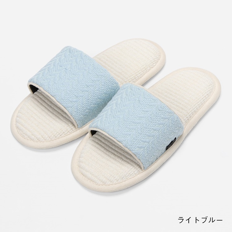 洗えるインド綿スリッパ ウェーブ(ライトブルー L(25~27cm))