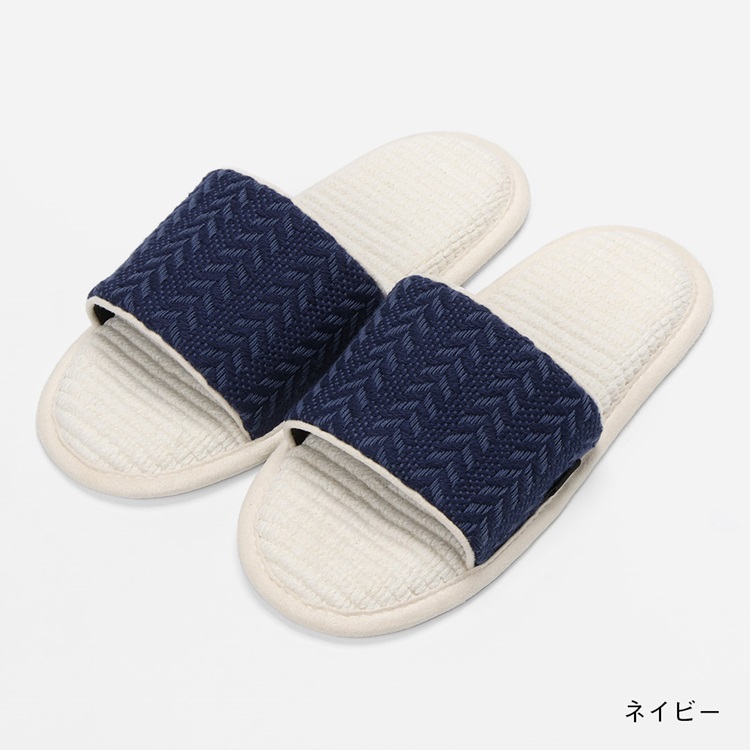 洗えるインド綿スリッパ ウェーブ(ネイビー M(22~24cm))