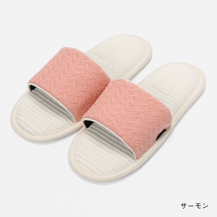 洗えるインド綿スリッパ ウェーブ(サーモン M(22~24cm))