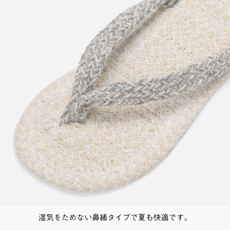 通気性の良い鼻緒型なので蒸れにくく、長時間さらさらの履き心地。