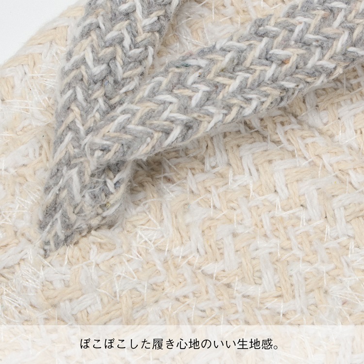 綿は通気性・吸湿性に優れていると言われており、ペタペタとする床もさらりと歩けるスリッパです。