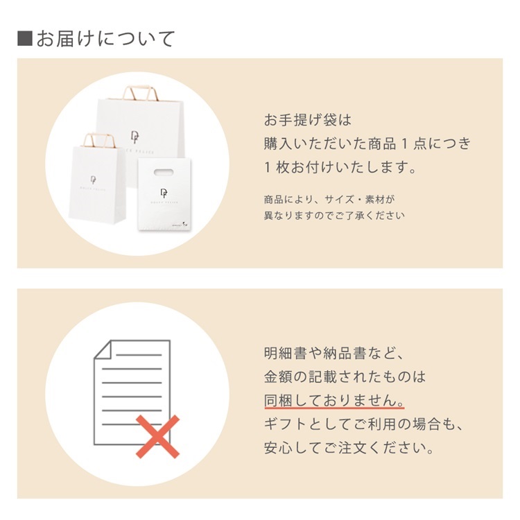 ご購入いただいた商品1点につき、お手提げ袋を1枚お付けいたします。