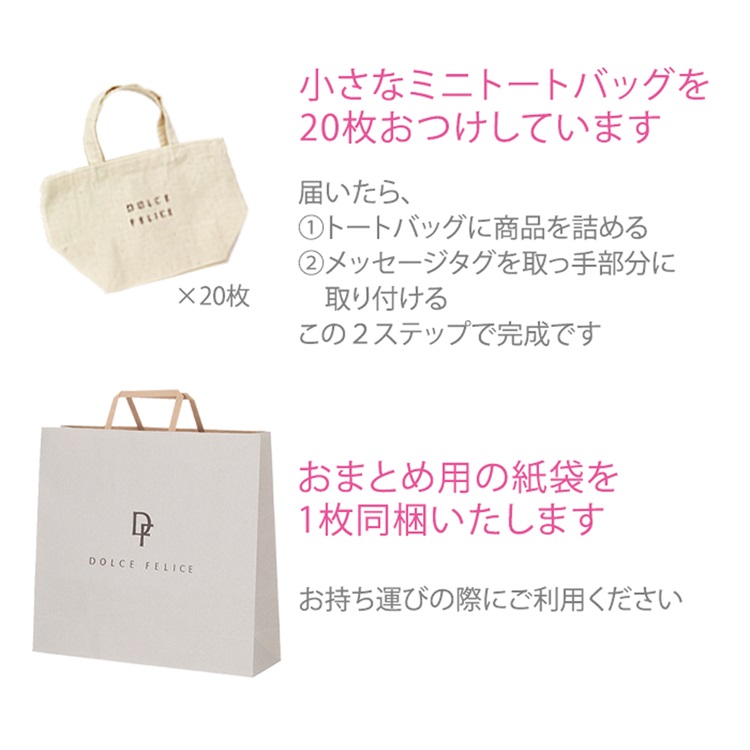 ◇小さなトートバッグとマカロン、メッセージタグを20個ずつお付けいたします。