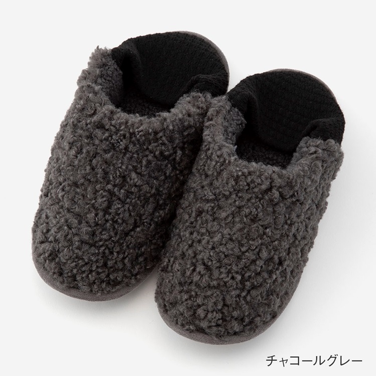 【拭ける軽量ソール】バブーシュ ボア(チャコールグレー)