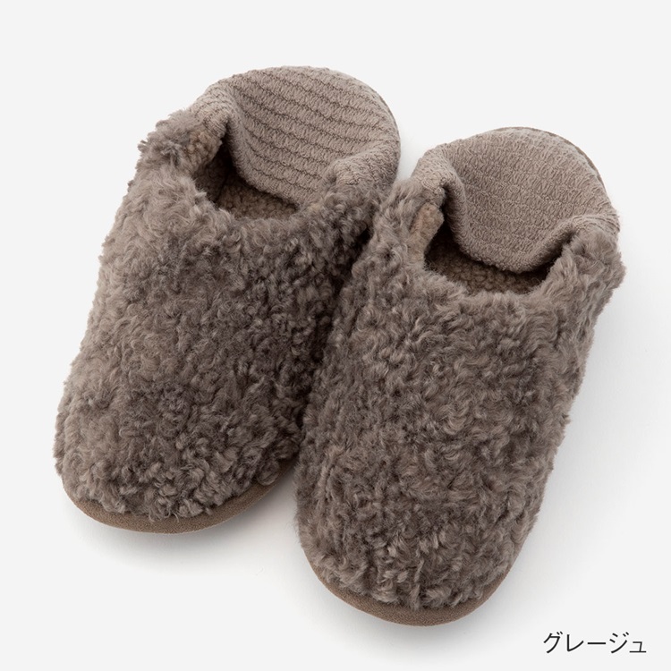 【拭ける軽量ソール】バブーシュ ボア(グレージュ)