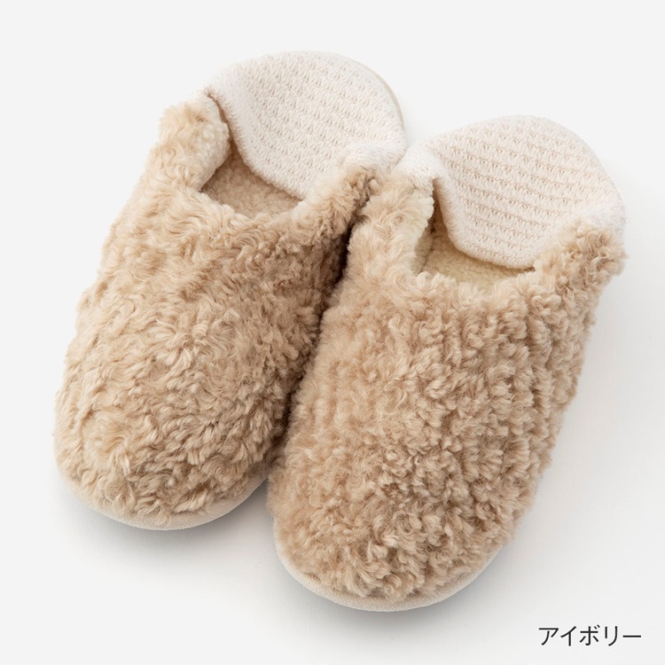 【拭ける軽量ソール】バブーシュ ボア(アイボリー)