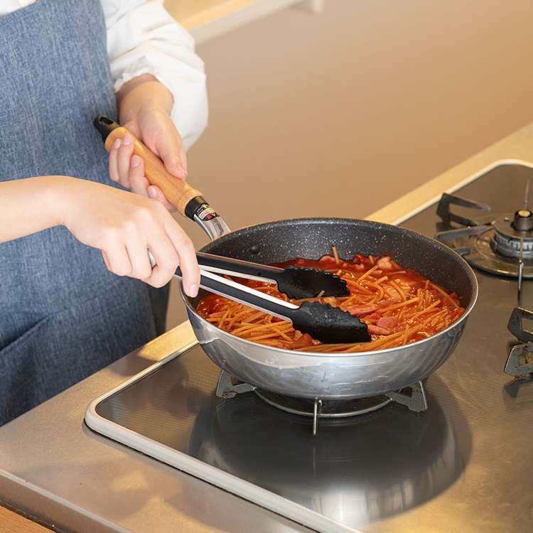 使いやすいです。持ち手がシリコンなので熱くなることはなく、トング部分もシリコンなのでフライパンを傷付ける心配もなく安心して使えます。ロック式でコンパクトに仕舞えるのはポイント高いです。