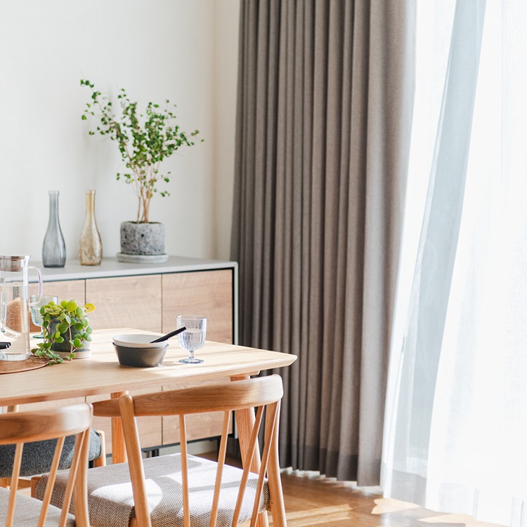 ナチュラルな見た目と柔らかさがある、非遮光ドレープカーテンです。