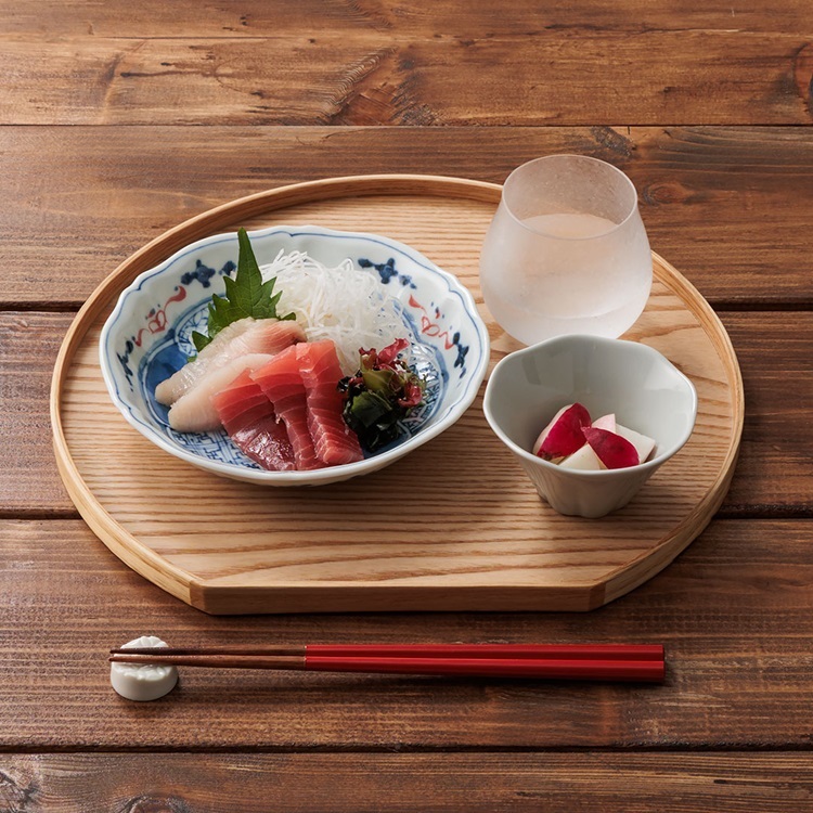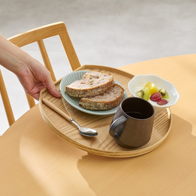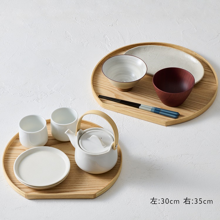 滑りにくくて運びやすく、和洋問わず使える半月トレイ