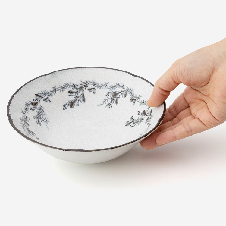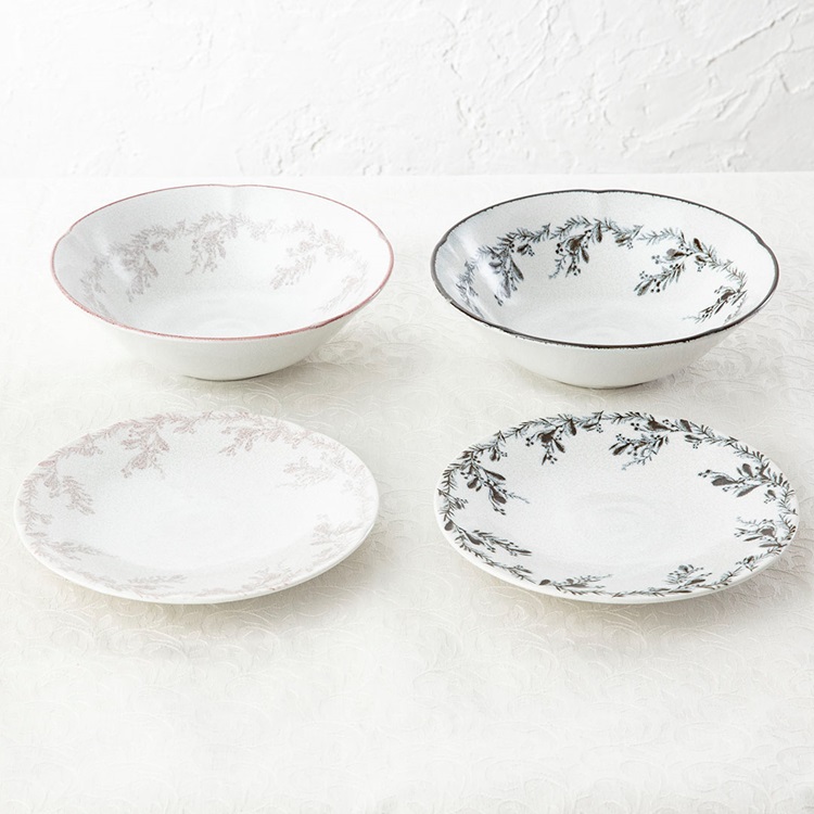 滲んだ絵柄と風合いある釉薬で、他の食器とも馴染む柄物シリーズ