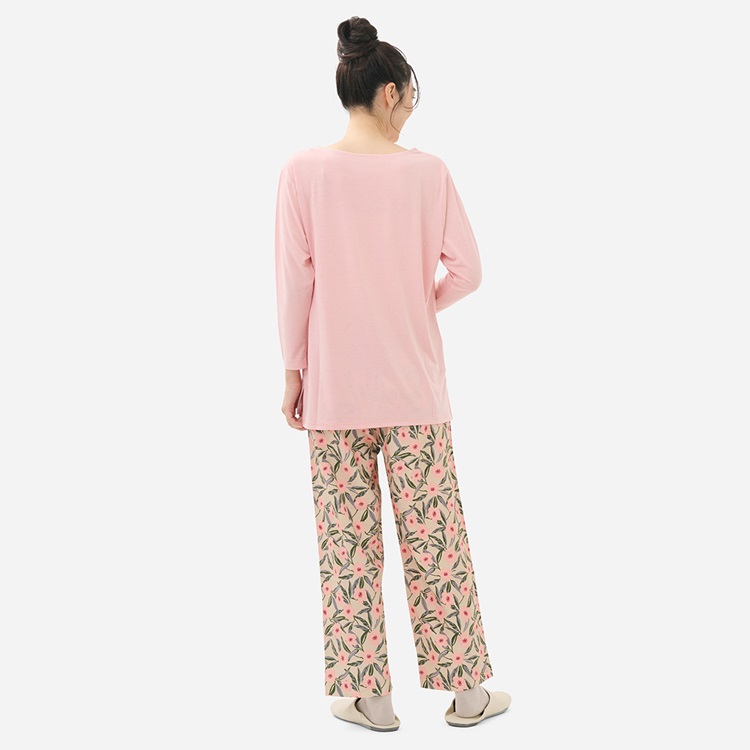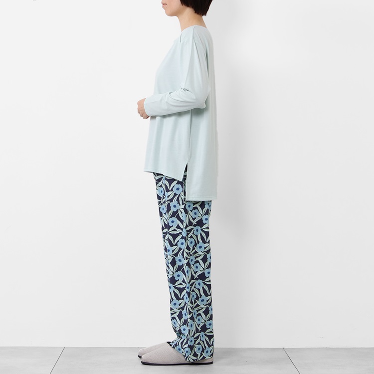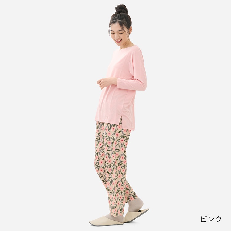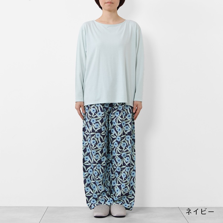 ケユカリラックスウェア ゆったりフラワーロングパンツセットアップ