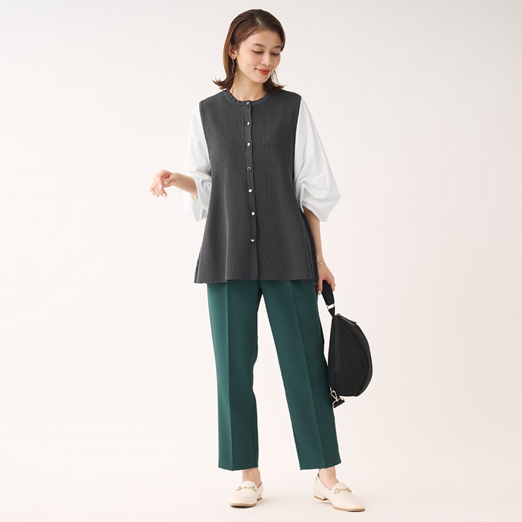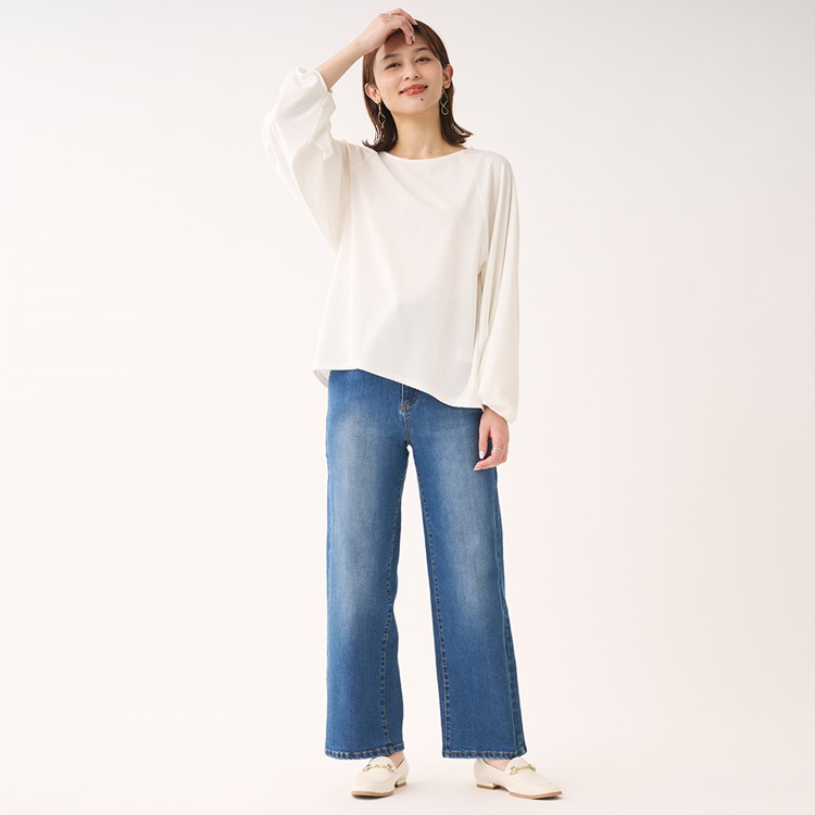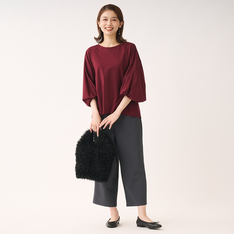 防汚撥水機能付き!デザインスリーブでブラウス感覚で着られるきれいめカットソーT