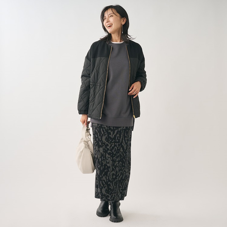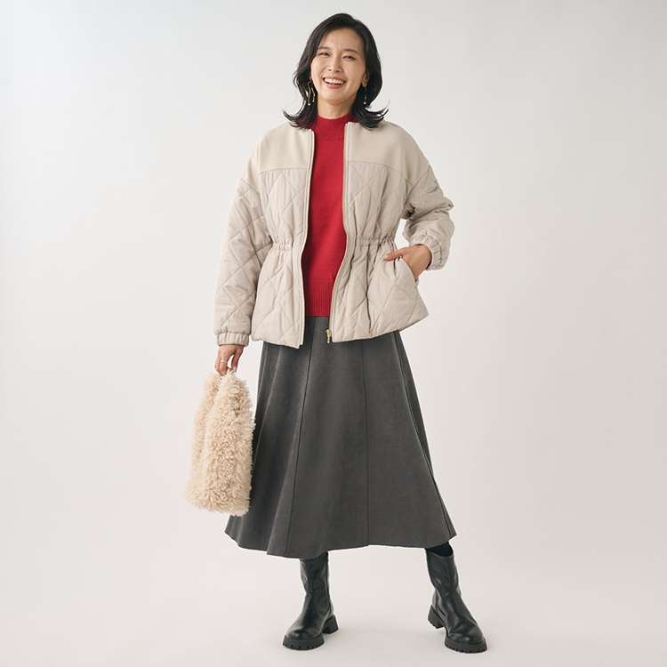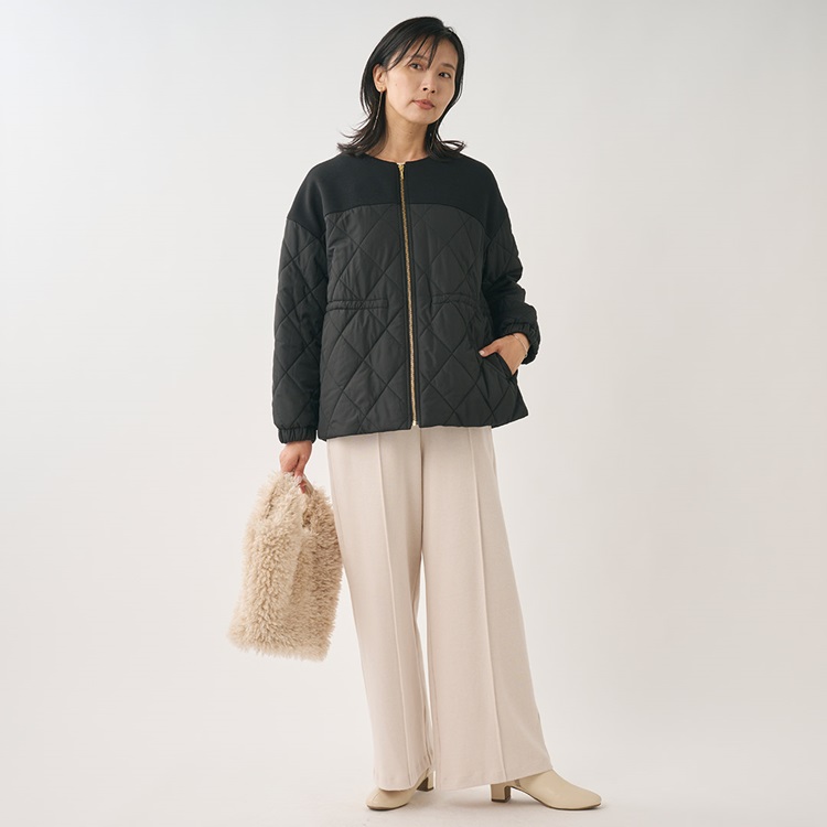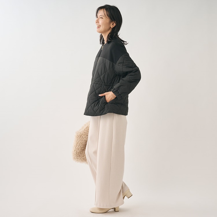【すごナノ撥水】マフラー付きキルトハーフジャケット