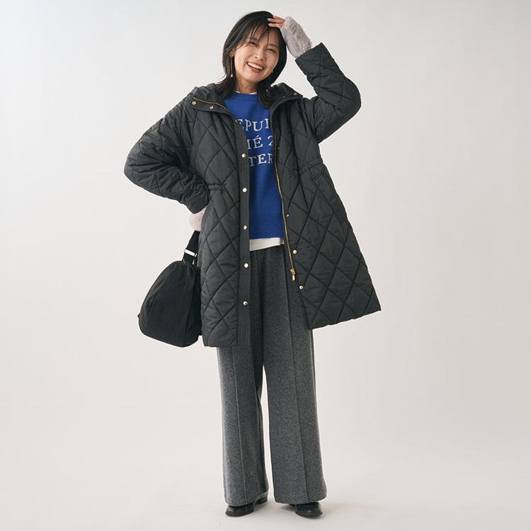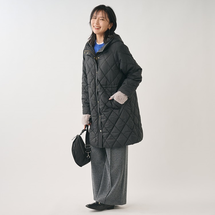 【すごナノ撥水】マフラー付きキルトハーフジャケット