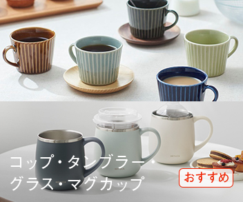 カラーガラスをポイントに。たっぷり容量の耐熱ガラスのグカップ