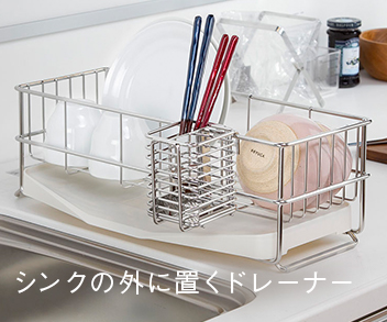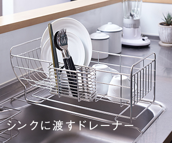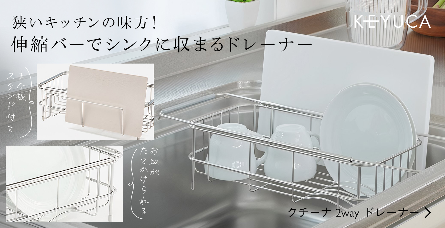 ドレーナー(水切りかご)の通販ならケユカ。ケユカでしか手に入らない、オリジナルのキッチン用品が揃います。丈夫で長く使えるステンレス製品を中心に、キッチン周りにあると便利なグッズがたくさん。 こちらは、ドレーナー(水切りかご)やドレーナー用オプションのページです。 ケユカのドレーナーは丈夫で上質な18-8ステンレス製。毎日使うものなので錆びにくい素材で作られています。手や指が当たっても痛くないよう、丸みの付いた接合部分などは、職人の技術と優しさも感じられます。 シンクの外、シンクの上、シンク内にも置けるタイプを取り揃えているので、キッチンスペースに合わせてお選びいただけます。 丁寧に作られた商品はご自宅はもちろん、ギフトにもピッタリ。新生活や母の日、新築祝いなどにおすすめです。お手入れのことまで考えられた、おしゃれなキッチングッズはケユカでお求めください。