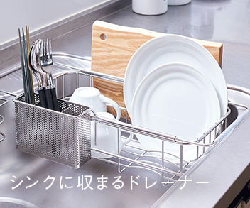 シンク内に納まる、使い勝手のよい水切りかご