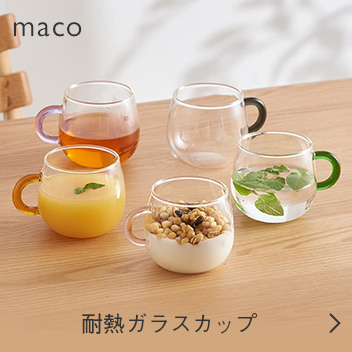 カラーガラスをポイントに。たっぷり容量の耐熱ガラスのグカップ