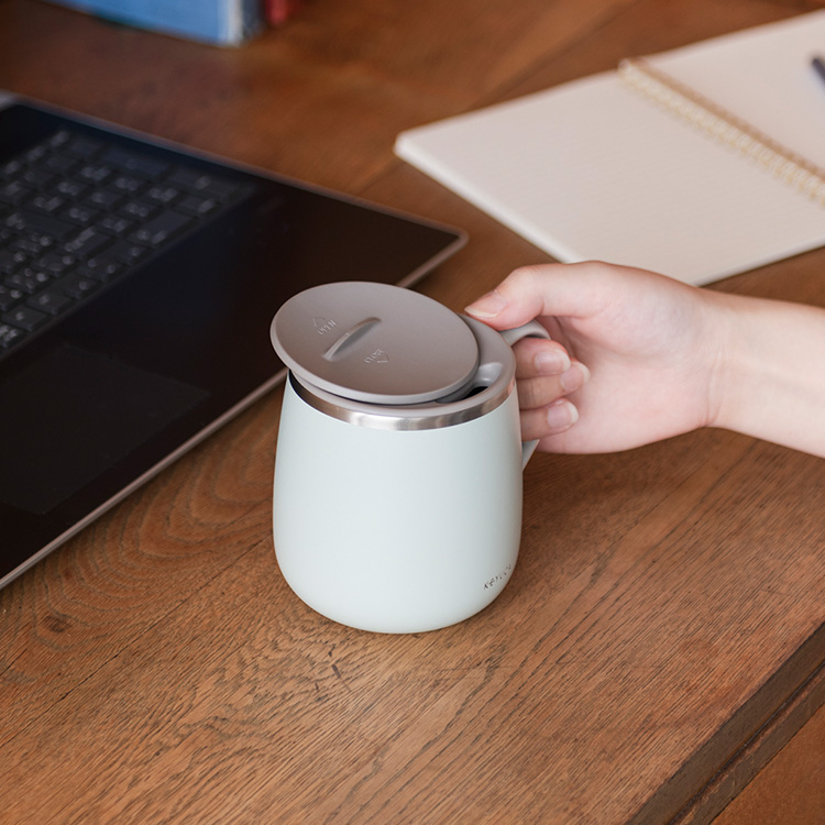 “真空層”で熱を逃さないので、熱い飲み物を入れても外側には熱が伝わりません。また、フタを付けることで湯気も逃さず、保温力がアップします。最後の一口まで温かさが続きます。
