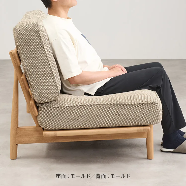 座った際には圧力を分散させ、身体が沈み込まないので体が疲れにくく、快適に横になった姿勢でいられます。 赤ちゃんへの授乳、つかまり立ちやあんよの練習など、育児をされるご家庭では座ったり立ったりすことも多くなりますが、モールドウレタンは腰への負担が少ないのも嬉しいポイントですね。