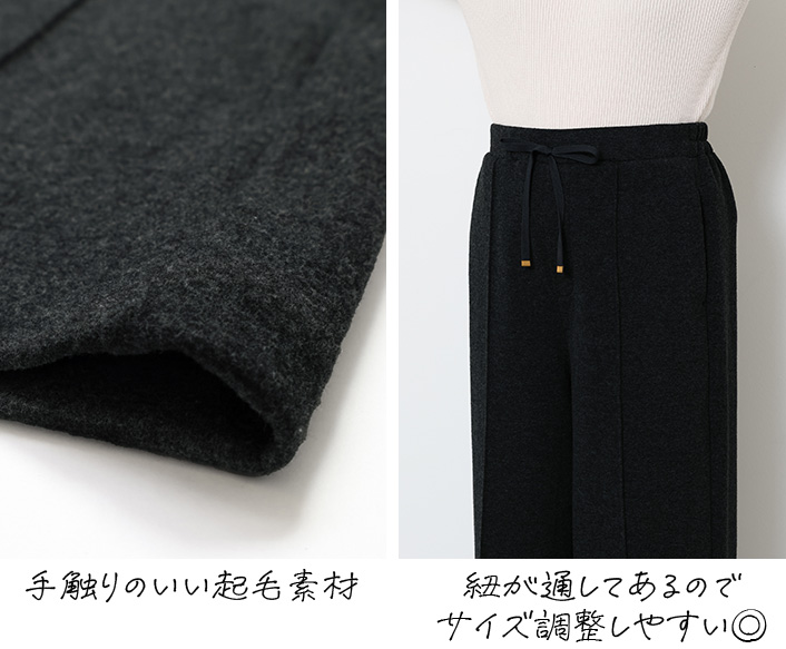 大人のカジュアルスタイルが叶う着心地の良い起毛ジャージーのワイドパンツ