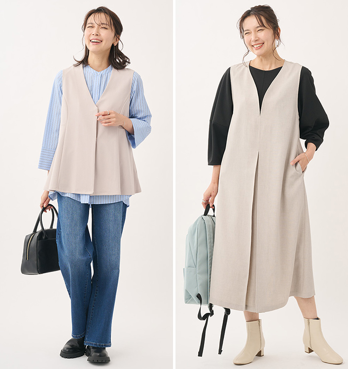 防汚撥水機能付き!重ねるだけね華やぐ万能ジレ