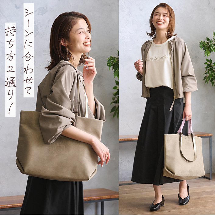 フェイクスエード2WAYバイカラーハンドルトートM