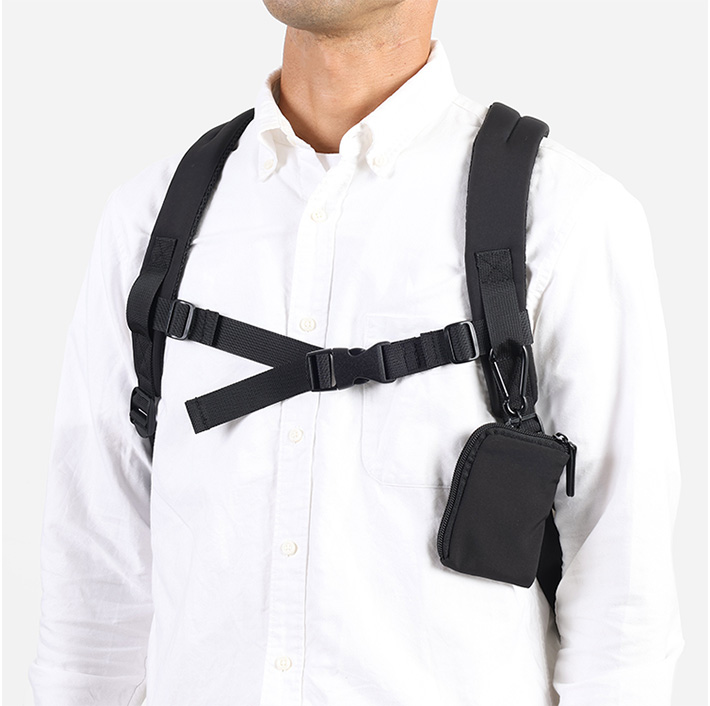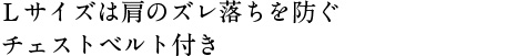 ショルダーベルトの強度を改良しました。厚めのクッションを入れ、肩のあたりが優しくなるように工夫しました。